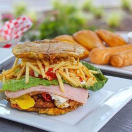 Para los fanáticos y amantes de la comida venezolana llegó una nueva alternativa. Venezuelan sandwich served hamburger style. Book food trucks for your next event.